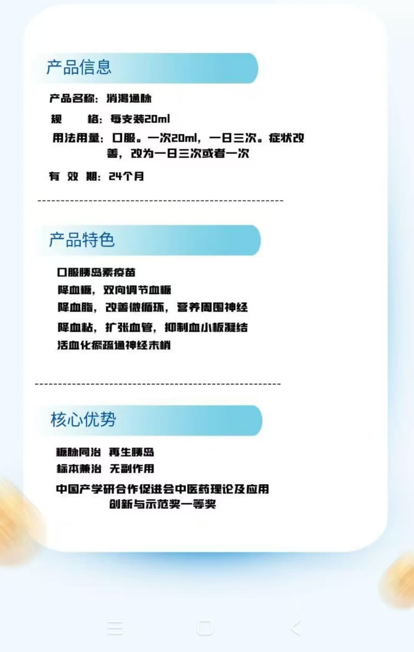 更多案例:患者在服用消渴通脉口服液治疗二型糖尿病的过程中,发现可以一药多治,可以治疗痛风、心梗脑梗等。
