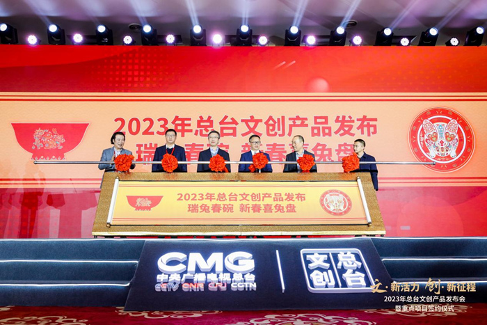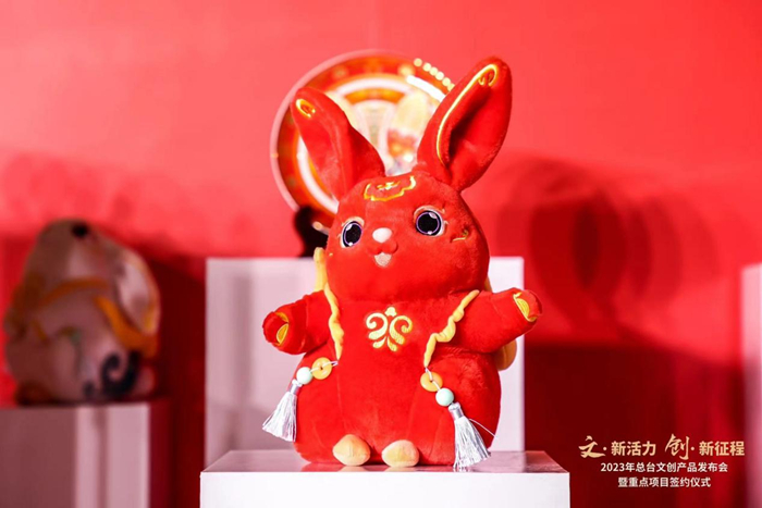 中新网北京1月9日电 1月8日,“2023年总台文创产品发布会暨重点项目签约仪式”在北京举行,中央广播电视总台春晚吉祥物“兔圆圆”,和总台文创兔年生肖形象“兔团团”等产品首次对外亮相。