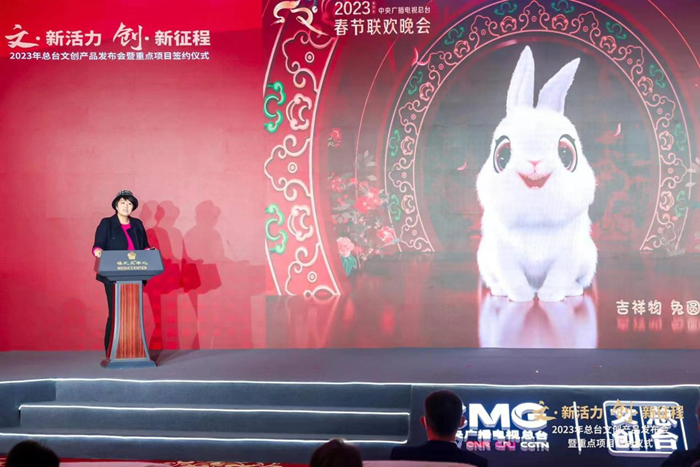 会上,2023年总台春节联欢晚会总导演于蕾介绍了春晚吉祥物“兔圆圆”的设计创意。活泼的萌萌态,亮亮的大眼睛,“万物有灵”的东方表达,以及取自距今6200万年前“安徽模鼠兔”化石生态复原形象典型特征的四颗门齿。吉祥物“兔圆圆”身上,不仅凝汇着网友们的喜好和期待,包藏着传统文化中生肖兔的意蕴和美感,也创造性地呈现了中国科学家的科研成就。