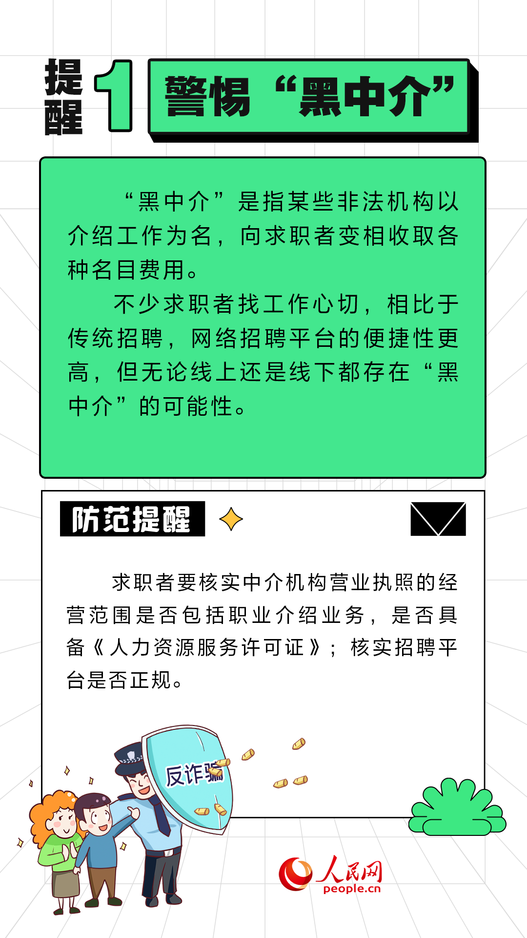 当下正值春招求职季,“黑中介”“假兼职”“乱收费”……这些在求职过程中容易遇到的陷阱一定要警惕。人民网“求真”栏目整理求职中常见的六大“坑”,提醒广大网民提高警惕。