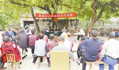 近日,安徽省芜湖市繁昌区人民法院法官来到孙村镇梅冲村的村民广场,公开开庭审理一起外来种粮大户拖欠80位村民土地承包费引发的群体性农村土地承包经营权纠纷案。合议庭结合庭审查明的事实以及现场勘察情况,经过耐心释法析理,当场促成80位村民与被告孙某达成在当季小麦收割前一次性支付土地承包费的调解协议。法官还一并化解了孙某拖欠3位村民的务工费纠纷。图为审理现场。