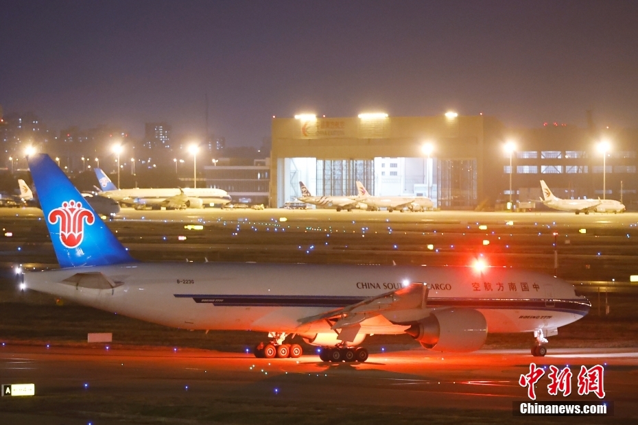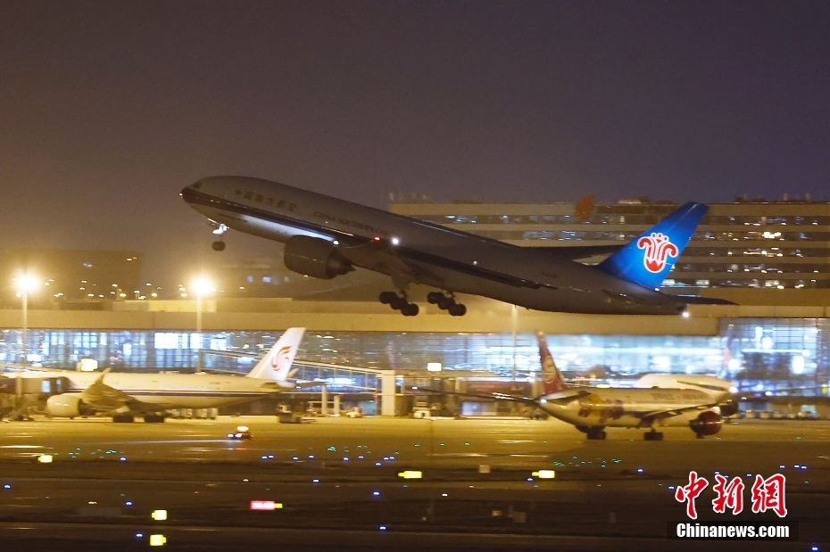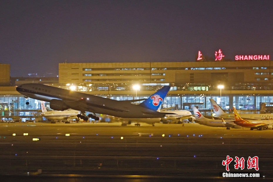 5月28日晚,大熊猫“丫丫”离开上海动物园,乘坐南航CZ2489货机启程返回北京动物园。图为南航CZ2489货机从上海虹桥国际机场起飞。中新社记者 殷立勤 摄