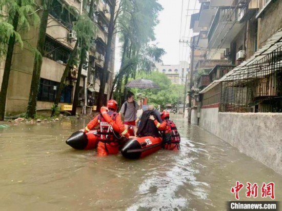 湖北咸宁暴雨引发内涝,消防营救疏散民众。朱燕林摄