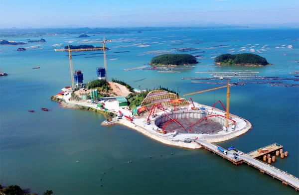 人民网钦州11月29日电11月28日中午12时,广西在建最长跨海大桥——龙门大桥东岸锚碇填芯混凝土浇筑施工顺利完成。自11月23日13时58分开始浇筑以来,经过每天24小时机不停转、人不解甲的连续施工作业,龙门大桥东岸锚碇仅用时5天,总计118小时,便完成4.7万立方混凝土的一次性连续浇筑,正式刷新海中桥梁建设史上最大连续浇筑世界纪录。
