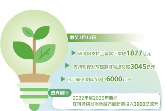 在创设时,人民银行就明确,对于符合要求的贷款,按贷款本金的60%予以低成本资金支持,以推动金融机构持续优化信贷结构,并降低企业融资成本。人民银行公布的数据显示,截至7月13日,碳减排支持工具累计发放1827亿元,支持银行发放碳减排领域贷款3045亿元,带动减少碳排放超过6000万吨。