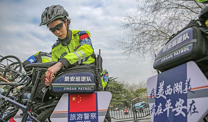 杭州:西湖边铿锵警花绽芳华