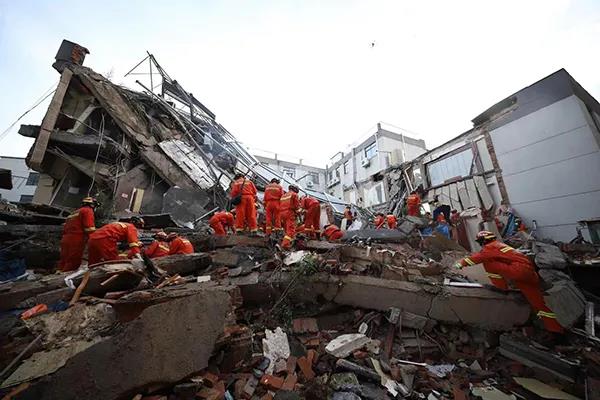 事故发生后,江苏省消防救援总队共投入了500余名消防救援人员在现场紧张施救。因为现场存在二次坍塌的风险,无法使用大型机械挖掘,现场已调集了两辆吊车作为支撑,形成相对安全的作业空间。目前现场分成了六个区域,每个区有18名消防救援人员分三组轮流作业,使用搜救犬和生命探测仪等装备进行搜救救援。