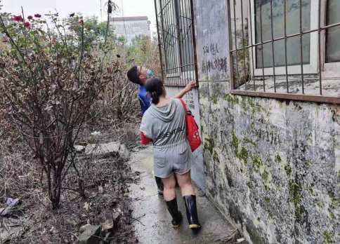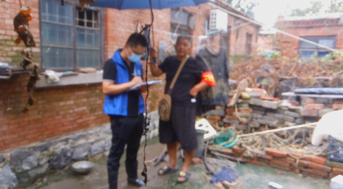 在村民王大娘家,技术人员发现这家建造于上世纪90年代末的砖混结构房屋,地面无明显问题,但客厅东北角的两间卧室顶却有沉降和裂缝,属于局部有隐患。排查小组人员边给在场的村民讲解情况,边在因灾损毁房屋评估表上填写具体受损信息和鉴定建议。
