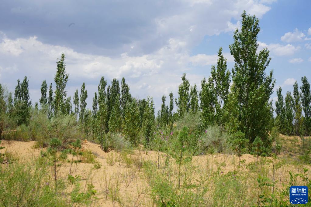 毛乌素沙地中茁壮生长的树木(7月7日摄)。新华社记者 侯维轶 摄
