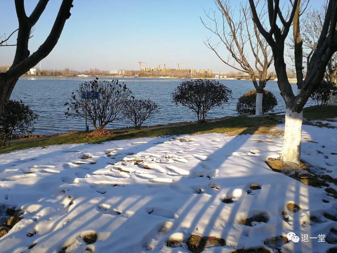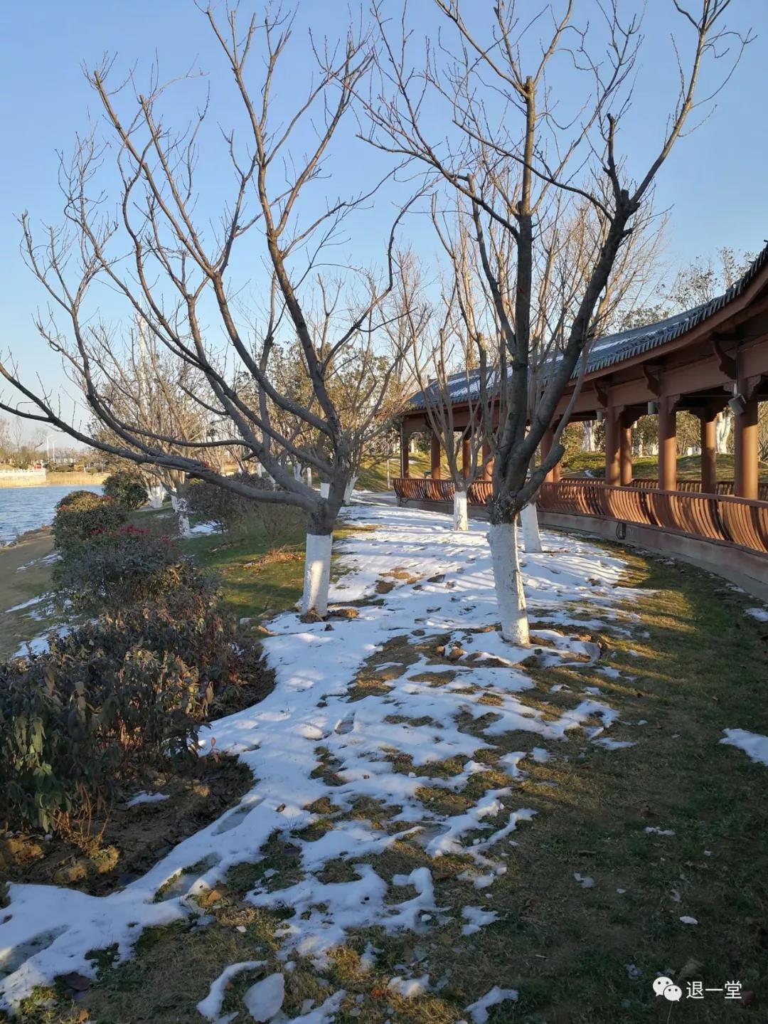 不久之前一场瑞雪降临商丘,又是一年好兆头。湖畔的残雪依偎在花层中,为日月湖的冬季增添了几分雅趣。残雪在阳光下也没有融化的痕迹和意愿,似乎这就自然的本意,也好像是说瑞雪找到美好的归宿。我没有感觉到冰雪的寒冷,恰恰是心里觉得暖意融融。