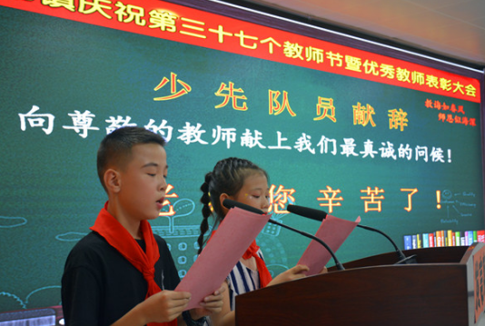 桥市镇第三十七个教师节表彰大会在庄严雄壮的国歌声中拉开帷幕,少先队员代表向默默耕耘、无私奉献的教师献上节日的祝福,师恩似海深、教诲如春风,亲爱的老师你们辛苦了!