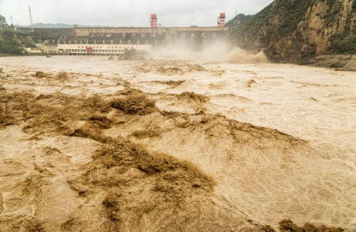 山西平陆:黄河三门峡水利枢纽开闸泄洪