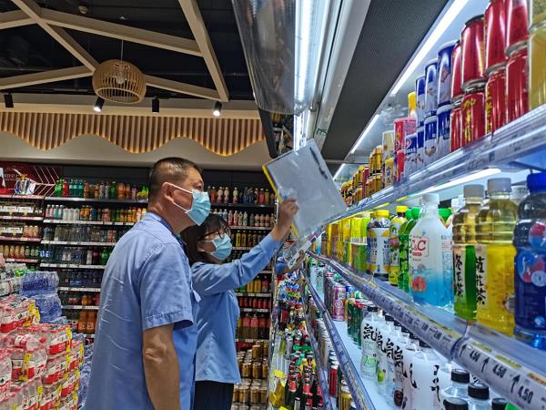 检查便利店保健食品(饮料)。郭淑玲 摄