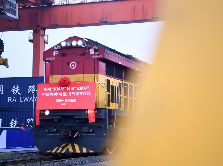 四川省委改革办专职副主任宋光辉说,探索“经济区与行政区适度分离改革”,将在不打破行政隶属关系的前提下,鼓励成都都市圈、川渝毗邻地区等地,通过创新产业协作、利益联结机制等,因地制宜探索促进资源要素高效配置的多种实现形式。 川渝高竹新区距离重庆很近,离江北机场38公里,离两江新区仅15公里。但是过去,却因为行政隶属关系不同,两地道路“各管各”,存在“近而不快”的问题。由于道路弯多、路窄、坡陡,到江北机场短短38公里,汽车要开近2个小时。 当地干部坦言,过去重庆渝北区和四川邻水县两地关系更多是竞争大于合作,表现出来的问题主要为产业同质化、市场封闭、资源要素流动不畅、合作内生动力不足。 2020年3月17日,成渝地区双城经济圈建设重庆四川党政联席会议第一次会议就明确:以川渝毗邻地区一体化高质量发展为突破,探索经济区和行政区适度分离改革。 2021年1月1日,中欧班列(成渝)号首列班车在重庆团结村站等待发车。新华社记者唐奕 摄 现在,四通八达、一体化的综合交通运输体系在成渝地区加速成型。以高速公路为例,川渝间规划的25条高速公路通道已建成13条,在建4条,并相继实现了第一次联合开工、开通高速公路,互联互通水平大幅提升。如四川达州,2017年高速公路车流量仅为550万辆,2020年猛增至6300万辆。 许多过去的“断头路”被打通。在川东渝北毗邻之地的重庆南北大道(北延段)施工现场,打桩机器轰鸣、挖掘机铁臂飞扬。“我们正在加紧施工,力争尽快建成通车。”邻水县公路养护中心项目现场负责人王瑜介绍。通车后,川渝高竹新区到重庆主城区时间将从现在的70分钟缩短到半个小时。 得益于川渝合作开展的嘉陵江航道建设,重庆果园港与四川南充港在2021年5月正式通航,四川南充嘉美印染有限公司也有了出口新通道。“相比以前先经公路运到上海,再经海运出口,新线路一年大概能节约600万元物流成本。”公司营销总监李强说。