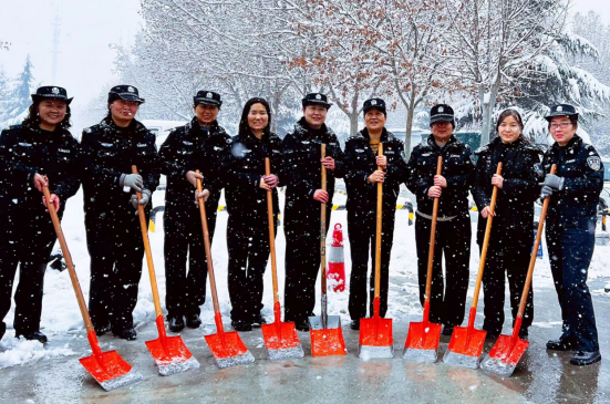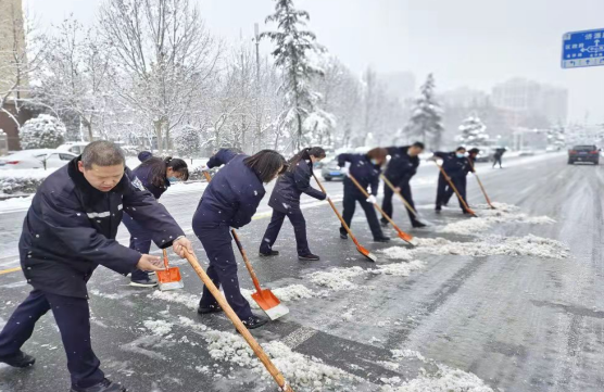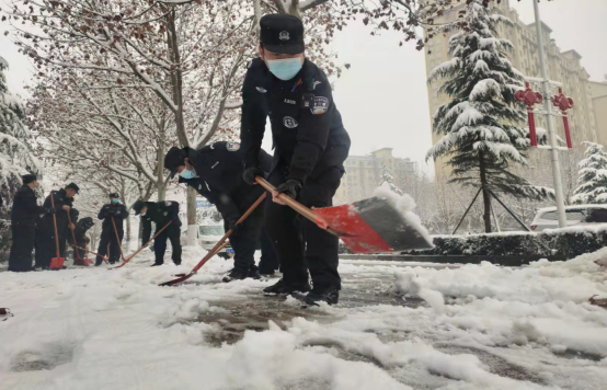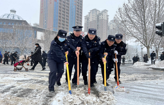 上街区公安局组织民警辅警走上街道 清扫积雪 保证居民出行通畅