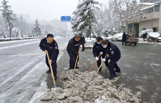 (通讯员:牛思远)数九严冬,飘扬的大雪为大地披上一层厚厚的银装。为及时清除积雪,避免路面结冰发生安全事故,保障群众出行安全,按照区委、区政府总体安排。1月23日,上街区公安局组织民警辅警上路清扫积雪确保路面畅通。