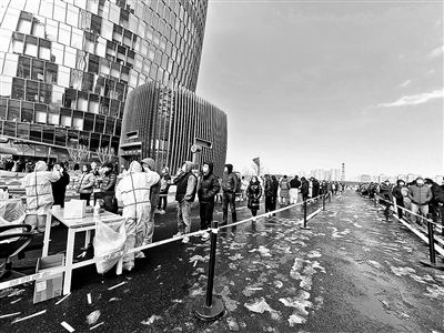 昨天恰逢农历“小年”,各个核酸检测点也充满了浓浓的年味儿。在东铁匠营街道世纪星家园核酸检测点外,挂着一个大大的“福”字,格外醒目。南方庄社区居委会工作人员告诉北青报记者:“今天是‘小年’,我们特意在现场贴上了‘福’字,一来是给大家提前拜年,同时也希望大家一起同心协力尽快完成筛查工作,度过一个祥和的春节。”