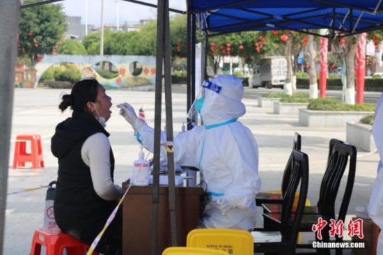 图为2月7日,广西百色市德保县开展新一轮全员核酸筛查。 中新社记者 陈秋霞 摄