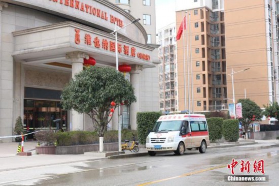 被官方列为疫情中风险地区的维也纳国际酒店位于县城中心腾飞广场的边上,酒店的大门口拉起了醒目的警戒线,实行封闭管理。偌大的广场已失去往日的喧嚣。不时有消杀车辆驶过酒店门前,一阵喷洒过后,空气中弥漫着浓浓的消毒水味道。