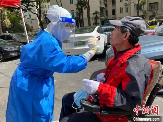魏蕾在上海为市民核酸采样 魏蕾供图
