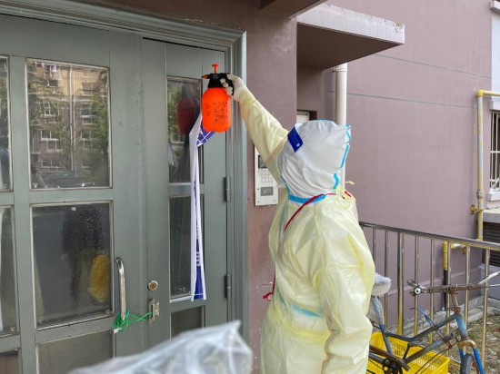 刘正均带领志愿者开展社区消杀(受访者供图)