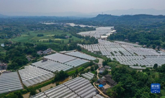 这是6月16日在四川省达州市达川区双庙镇拍摄的蔬菜大棚(无人机照片)。