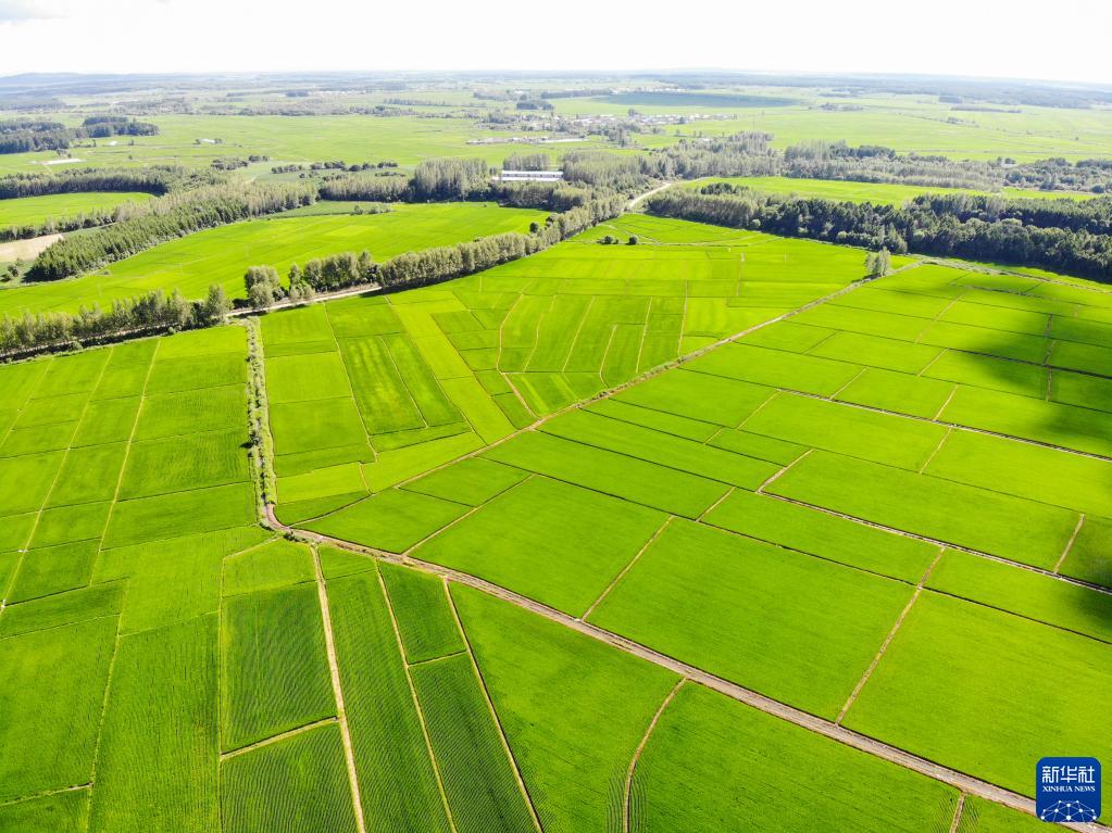 7月20日拍摄的铁力市山泉农机农民专业合作社高标准有机稻田(无人机照片)。