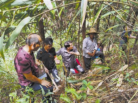 图①:执行干警与当地林业站技术人员确认林地位置。