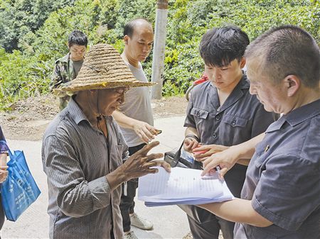 盛夏时节,高温酷暑下,执行干警沿着陡峭的山路,步行前往现场,仔细测量确认案涉林地的界限,并向当事人释明强制执行相关法律规定,劝导被执行人依法履行生效文书判决。经调解,双方当事人就争执不下的事项作出确认,被执行人表示愿意主动履行法院判决并当场签收了结案文书。(吴琪 黄丽叶)
