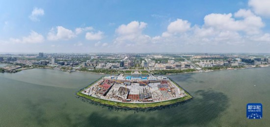 8月29日,空中俯瞰临港西岛金融中心项目工地(无人机照片)。