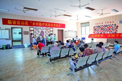 杭州市临安区山地众多,近年来,为解决山区群众看病难、看病远问题,当地推动流动医院进村诊疗、建立村民数字健康档案、搭建三级联动服务平台等措施,使山区群众在家门口享受优质医疗服务。图为9月6日,临安区武山村巡回诊疗服务现场。新华社记者 江汉摄