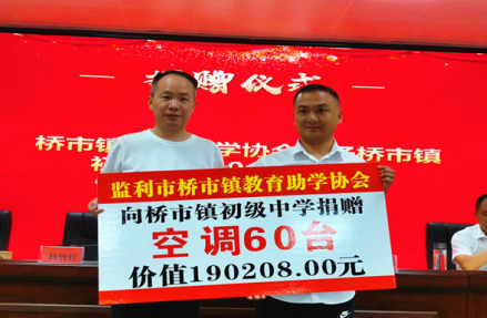 浓浓桑梓情 拳拳赤子心。为促进家乡教育发展,提高办学水平,鼓励优秀学子,帮助有困难的孩子顺利完成学业,成立于2022年的桥市镇教育助学协会定向捐赠桥市镇初级中学格力空调60台改善学生住宿条件;对今年考取双一流大学的本科生以及硕士、博士研究生每人2000元或3000元不等的励志奖学金,资助全镇32名贫困中小学生每人1000元励志助学金,共计捐资30余万元。教育协会会长杨皆红勉励与会学生要坚定理想信念,树立远大抱负,要珍惜来之不易的学习环境,要常怀感恩之情,并把感恩之情转化为刻苦学习、严格要求、奋发向上的力量,转化为回报社会、建设祖国、振兴中华的强大动力,积极投身波澜壮阔的时代洪流,积极投身到中华民族伟大复兴的伟大实践中去。
