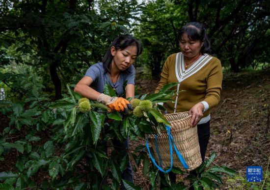 9月9日,农民在禄丰市中村乡河西村采收板栗。