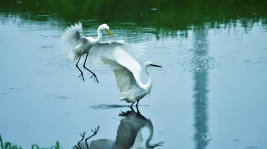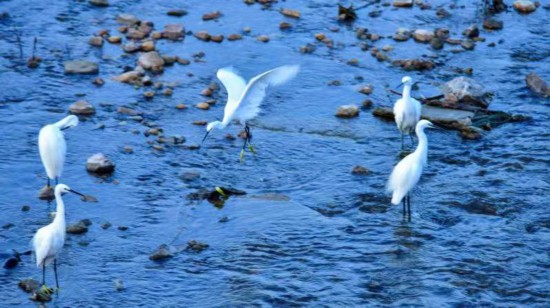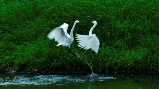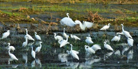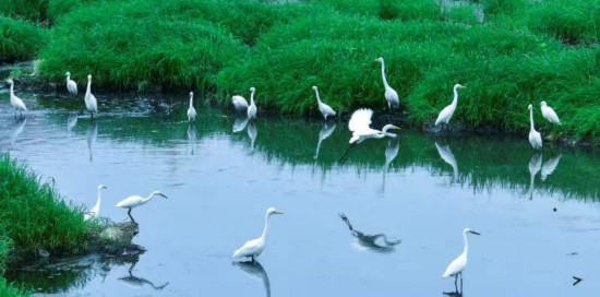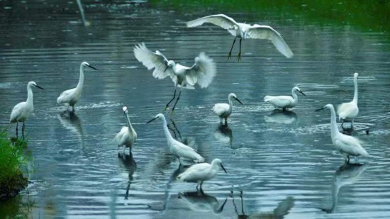 中国青年网南阳9月9日电(记者 杨逸凡 通讯员 张栋察) “草长平湖白鹭飞”,“一行白鹭上青天”,“轻舟点点飞白鹭”……此等意境,向来只在诗情画意之中,但在今天河南方城的白鹭湾,却是平常。每年5到9月,方城县杨楼镇苇子沟的白鹭湾,田里、路边、水畔、树上,随处可见白鹭蹁跹。有时几百上千只白鹭集体飞起,遮住半个村庄,很是壮观。青山绿水之间,人与白鹭,相见而不惧,相望而不扰,显然一幅人与自然和谐共生的生态画卷。