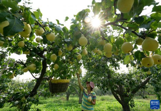 9月12日,河北省晋州市周家庄乡果农在果园采摘鸭梨。