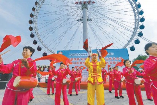 昨天,石景山区第四届“老街坊”社区邻里节在石景山游乐园启动,社区居民相聚一堂,共同庆祝自己的节日。 本报记者 吴镝摄