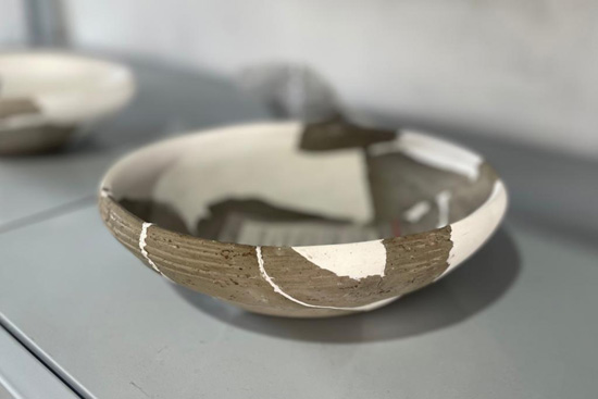 在现场,记者看到了考古工作者发掘的一段城墙解剖面和一个带有灰烬、柱洞、两眼水井的生活区遗存。城墙底宽16米,上宽7米,目前保存的高度1米左右。生活区内有明显生火痕迹,并发现不少陶制生活器皿,还有部分原始瓷器,专家猜测这可能是厨房一类的建筑。在这一建筑遗址附近,勘探还发现两个高等级建筑遗址,目前尚未进行发掘。