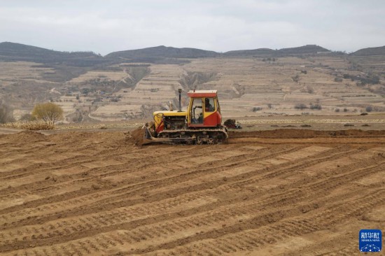 11月10日,施工机械在通渭县什川镇高标准农田建设现场作业。
