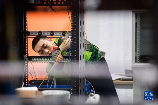 11月17日,参赛选手在信息网络布线项目比赛中。