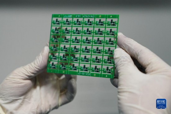 11月30日,在安徽省蚌埠市希磁科技有限公司,工作人员展示一款智能传感器控制芯片。