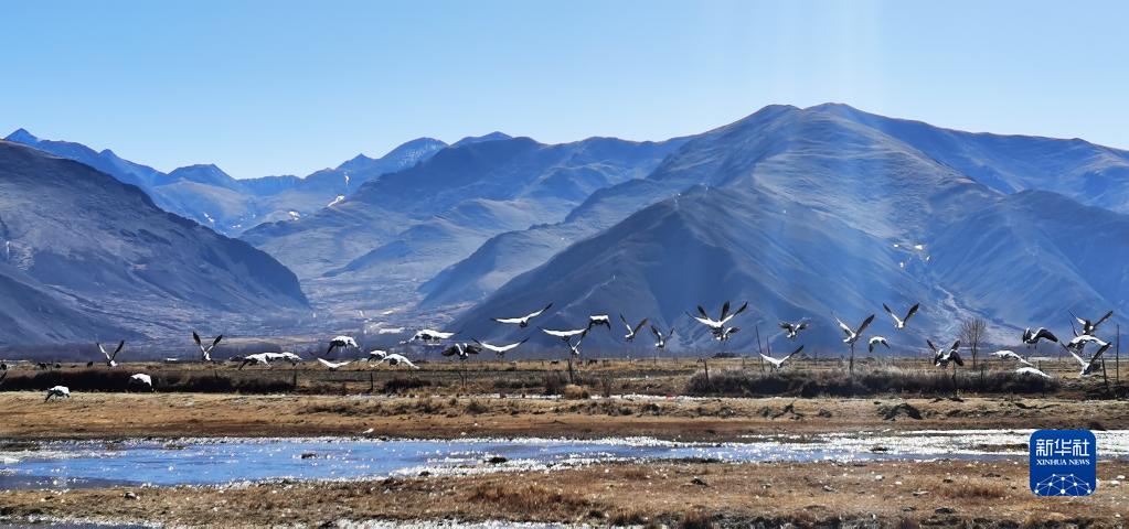 唐嘎乡位于拉萨市达孜区东北部,这里每年冬季都会迎来黑颈鹤、斑头雁、赤麻鸭等候鸟。这些珍稀鸟类时而在空中盘旋,时而栖息在水边,营造出一幅生机盎然的冬季画卷。