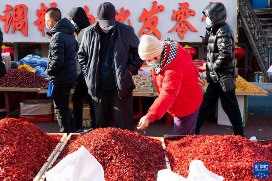 春节临近,黑龙江省绥芬河市龙须沟步行街的年货大集十分热闹。不少市民前来选购年货,迎接新春的到来。