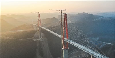 新春时节,贵州省龙里县天气晴好,建设中的龙里河大桥沐浴在晨光中,雄浑壮观。龙里河大桥位于贵州省龙里县境内,全长1260米,项目建成后将更好地服务当地旅游业发展和山区群众出行。图为1月29日的贵州龙里河大桥。