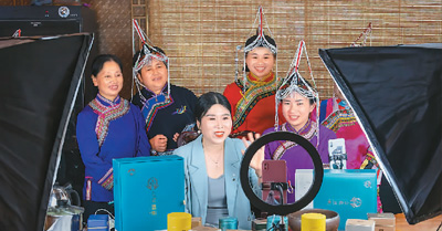浙江省丽水市景宁畲族自治县鹤溪街道为留守村民和从事新业态人员举办“共富学堂”技能培训班,涵盖直播带货等实用课程。图为村民和培训班老师与直播间观众互动。 |