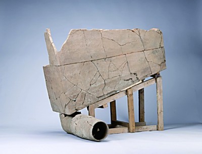 栎阳城遗址三号建筑出土的可冲水陶便器与弯管组合情况 阿房宫与上林苑考古队供图