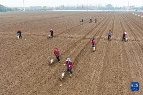 初春时节,湖北省各地农民抢抓农时,翻整田地,播种施肥,呈现一派繁忙景象。