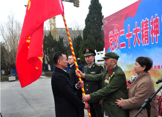 会上,王瑞勇介绍了首批“老兵宣讲团”成员,宣讲团荣誉团长、老英雄、老前辈邢树恩为宣讲团团长、县退役军人事务局副局长李海涛授旗,宣讲团成员代表作了表态发言,全体退伍老兵重温了军人誓词。