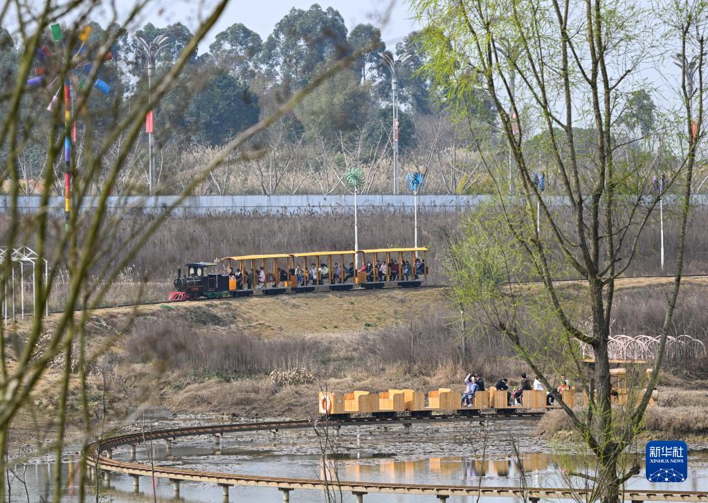 2月25日,游客在四川眉山市仁寿县中铁火车来斯休闲体验园乘坐小火车游玩。