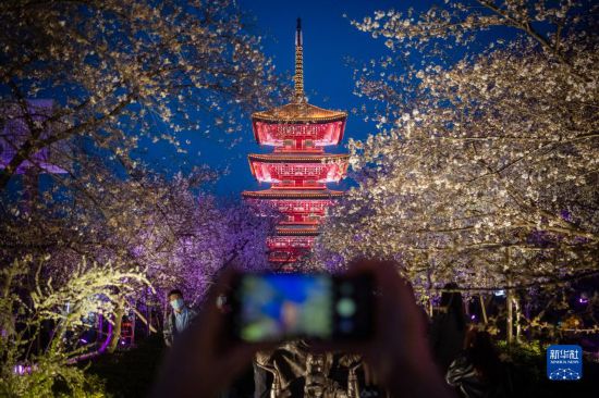 近日,湖北武汉东湖樱园的樱花竞相绽放,吸引众多游客前来踏青赏花,乐享春光。