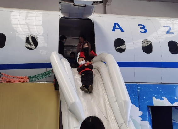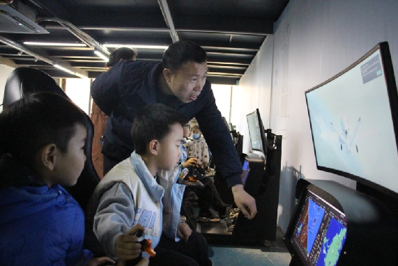 警宝们走进神秘的机库,观摩“休息”的各款飞机真身,聆听讲解员有关飞机知识的讲解,学习航空知识,全方面了解飞行知识,并通过波音737模拟飞行体验,认识基本飞行仪表、掌握飞机操纵方式,起飞、平飞、协调转向和降落等难易不同的飞行科目。看着他们手持操纵杆,坐在模拟飞行器前,目不转睛地看着自己的飞机在空中飞翔,一会儿直冲上天,一会儿坠入海里,心中的责任感油然而生,生怕飞机坠毁。紧张又刺激,真正的过把开飞机的瘾。警宝在爸爸妈妈的带领下个个乐在其中,现场活动气氛浓厚,处处洋溢着愉悦的嬉笑声,仿佛一片欢乐的海洋。